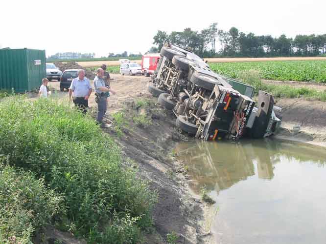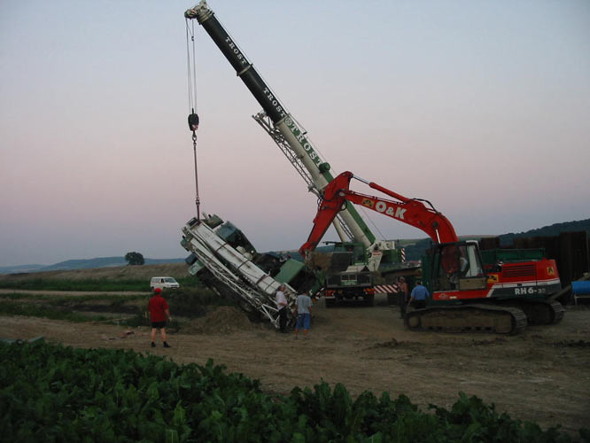 Ein unbekannnter Täter nahm in der Nacht des 17. Juli 2005 einen abgesperrten Autokran in Betrieb, kam bei dem unebenen Gelände zu nahe an den Abhang und stürzte dabei den tonnenschweren Kran in den grundwasserführenden Hochwiesgraben in Pixendorf.