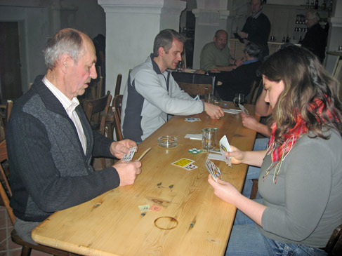 Piatnik hätte seine Freude daran, am Freitag den 14. März 2008 war es für die Schnapser wieder soweit. Rund 40 Personen beteiligten sich zum Gesellschaftschnapsen in dem restaurierten Gewölbe der Dorferneuerung Pixendorf.