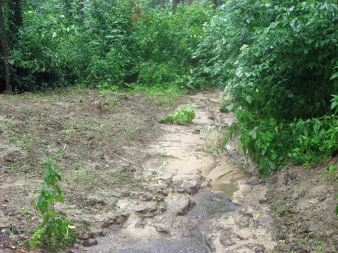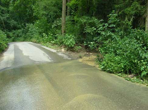 Das Unwetter hatte in Pixendorf große Schäden angerichtet. Bäume waren entwurzelt, Hausdächer teilweise abgedeckt, Keller überflutet, am Langen Berg riss das Bachbett auf und Strassen wurden vermurt.