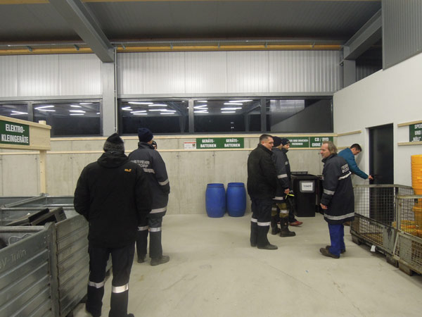 Bei der anschließenden Lagebesprechung wurde über die baulichen Gegebenheiten und den Brandklassen gesprochen. Gerade in einem Altstoffsammelzentrum sind konzentriert Sondermüll und brennbare Stoffe gelagert.