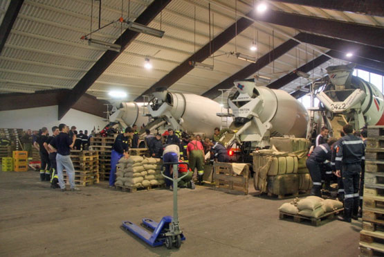 Pressebericht 05.06.2013 vom Bezirksfeuerwehrkommando Tulln: Die Pegel haben den Höchstand erreicht. Die Pumparbeiten haben eingesetzt um das Sickerwasser welches sich durch die aufgeweichten Dämme den Weg sucht, wieder in die Donau zurück zu pumpen. Derzeit sind im Bezirk Tulln 25 Feuerwehren mit 155 Mann und 32 Fahrzeugen im Einsatz. Eine Großpumpe die 200.000 Liter in der Stunde pumpen kann wird im Bezirk Tulln eingesetzt. In der Messehalle wurden noch 10.000 Sandsäcke vorbereitet und auf Paletten gelagert.