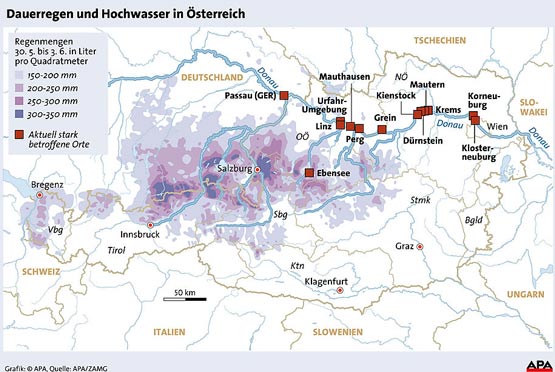Derzeitige Hochwassersituation in Österreich