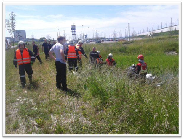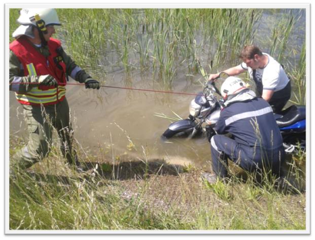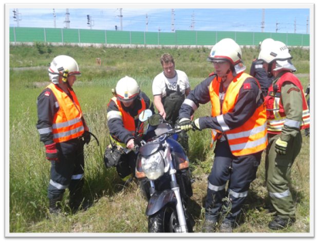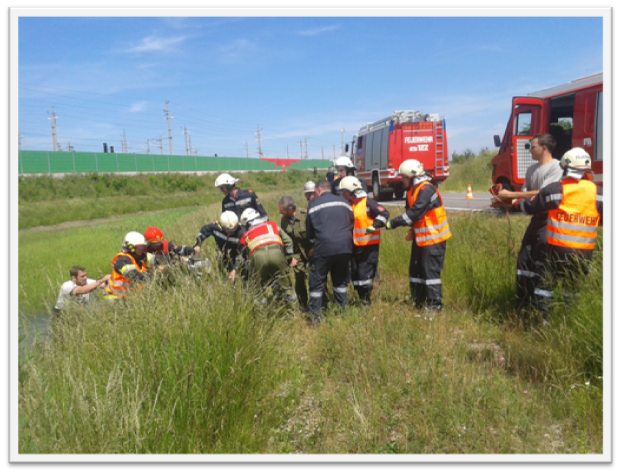 Alarmierung am 15.06.2013 um 14:29 Fahrzeugbergung (Motorrad) auf L2090 Nähe Bhf Tullnerfeld. Ein Motorradfahrer war von der Fahrbahn abgekommen und ist in ein Auffangbecken gefahren. Die zufällig vorbeikommenden Kollegen von der FF Katzelsdorf, welche von einem Feuerwehrbewerb gekommen waren, hielten an versorgten den Motorradfahrer der zum Glück unverletzt war, alarmierten Florian NÖ und sicherten die Unfallstelle ab.