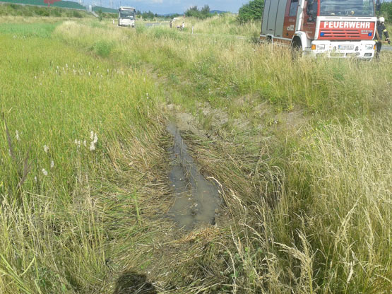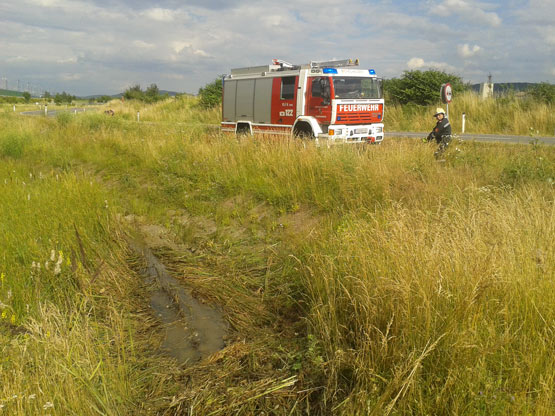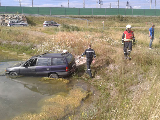 Der Autofahrer war von der Fahrbahn abgekommen und in ein Auffangbecken gefahren. Der Lenker blieb dabei unverletzt. Da wir bei diesem Einsatz unterbesetzt waren übernahmen die Kollegen der FF Michelhausen den Einsatz.