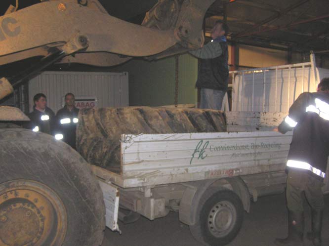 Eingesetzte Gerätschaft: Stapler, KLF, Scheinwerfer, 8 Mann insgesamt 8 Stunden.